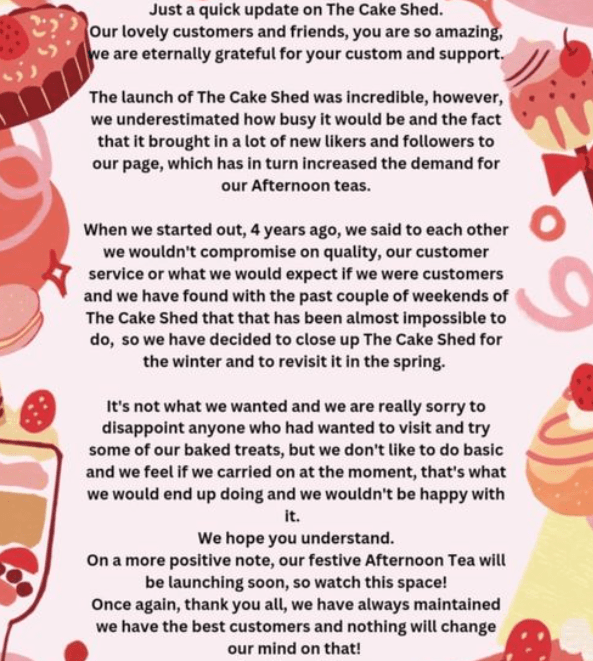 PLEASE NOTE: The Cake Shed is currently on pause until the New Year!